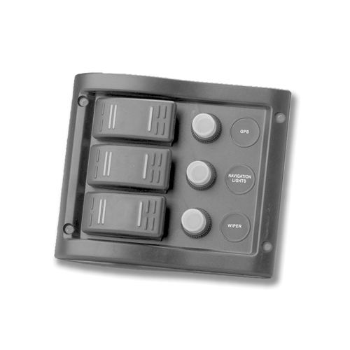 Pannello elettrico in ABS restistente ai raggi UV, interruttori a leva protetti da cappucci in gomma, con fusibili...